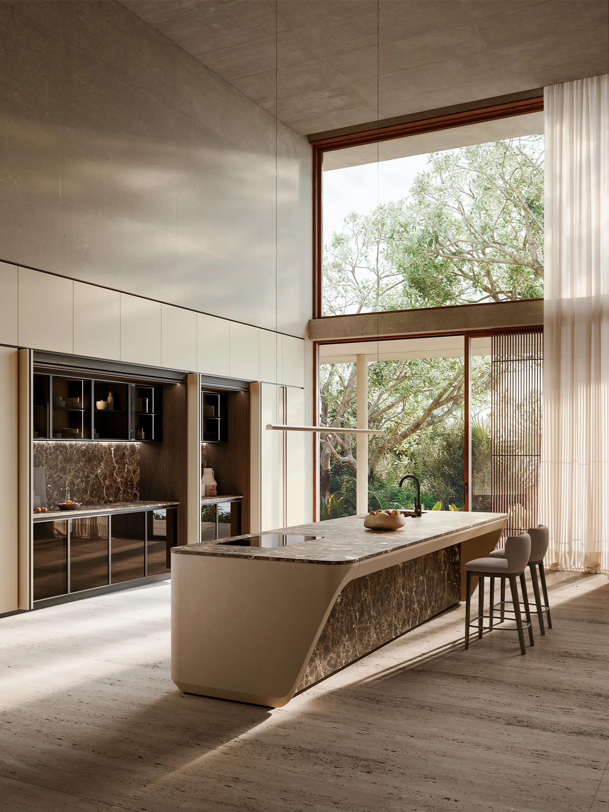 Kitchens, bathrooms, and systems converge into a single architectural vision: a constant balance between entrepreneurial vision, production model, and design creativity—held together by both small and major insights that, by altering surface performance and appearance, emphasizing corners, creating curves, concealing joints, and imagining future uses, have invented the signs of a new vocabulary for defining and configuring space.